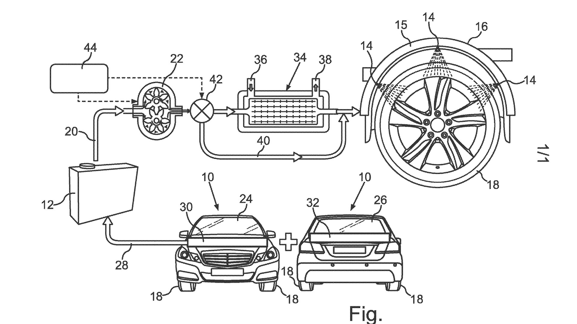 Суть устройства такова. В колёсной арке размещены форсунки, вода из которых (жидкость будут накапливать в специальных резервуарах во время мойки машины, дождя или таяния снега) будет при необходимости подаваться на шину.